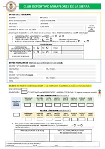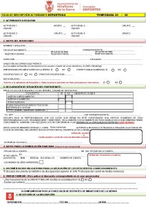 - Hoja de inscripción, escuela de fútbol
