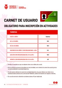- Es imprescindible estar en posesión del C.U. (carnet usuario) para inscribirse en cualquier actividad.