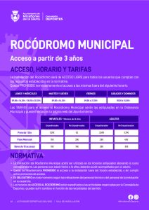 Los horarios de ACCESO AL ROCÓDROMO están supeditados a las actividades organizadas por la Concejalía de