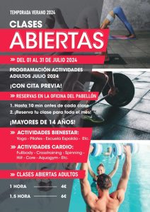 Planning Clases Abiertas del 01 al 31 Julio