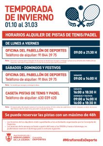 Alquiler-reservas pistas de tenis-pádel temporada de INVIERNO