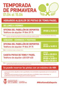 Alquiler-reservas pistas de tenis-pádel temporada de PRIMAVERA-VERANO