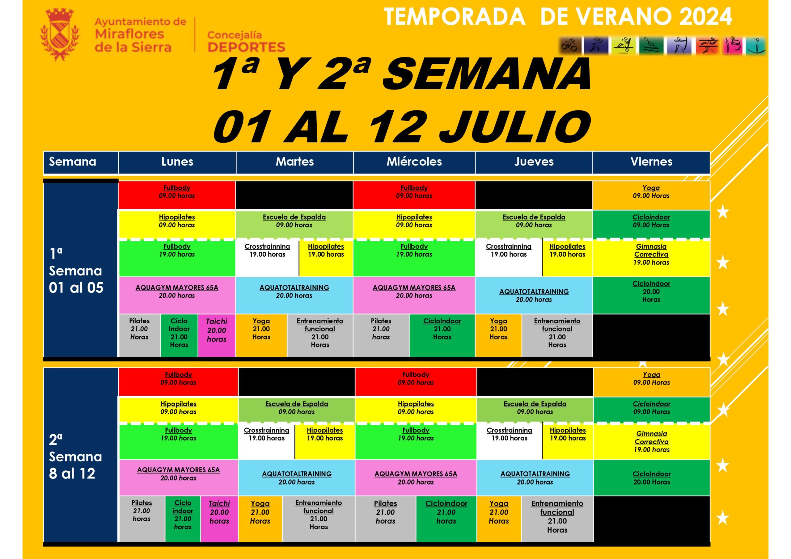 - Los horarios de las actividades pueden estar sujetos a variaciones según necesidades.