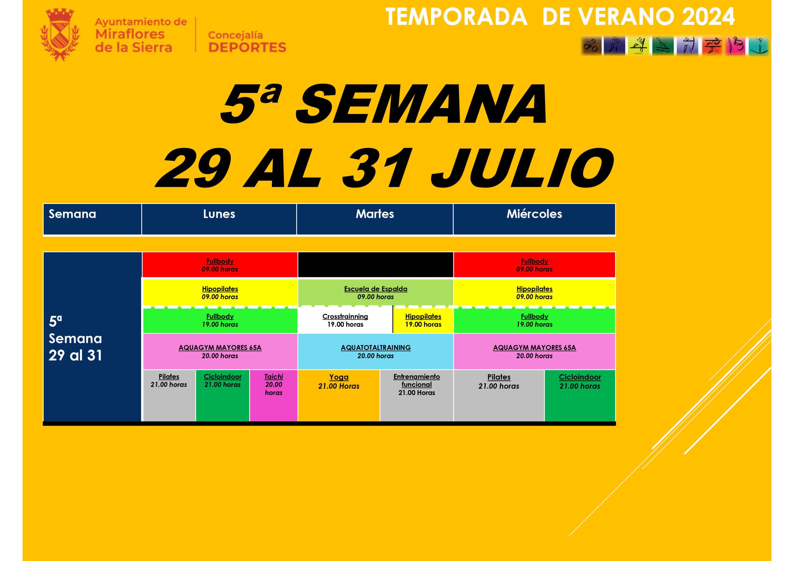 11.1 Actividades deportivas CAMPAÑA DE VERANO (mayores de 14 años) :