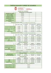 | TENIS Y PADEL: | ALQUILERES PISTAS Y CARNET USUARIO |