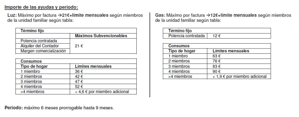 - Situación de precariedad económica que imposibilite el pago de facturas de electricidad y/o gas. Se entenderá cumplido este requisito en todos los casos en los que los servicios sociales municipales consideren probada dicha situación de precariedad.