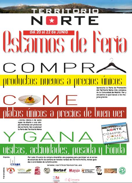 Durante el fin de semana del 20, 21 y 22 de junio, los establecimientos del comercio, restauración y servicios de la Zona Norte de la Comunidad de Madrid, asociados a CENOR y adheridos a la campaña “Compra, Come y Gana” ofrecerán sus mejores ofertas a los consumidores, quienes podrán optar con sus compras al sorteo de interesantes premios. Vuelve esta iniciativa para potenciar el comercio y el turismo en esta Zona y atraer a visitantes de la capital y del resto de la región.