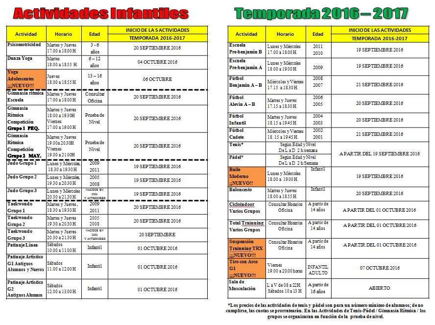 Informate de los nuevos grupos y horarios de las Actividades Deportivas y elige tu preferida.