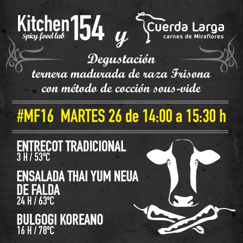 Entre estas exposiciones encontramos una que será conocida para muchos vecinos. La empresa local ‘Cuerda Larga, carnes de Miraflores’ estará entre los participantes de Madrid Fusión 2016 presentando tres platos elaborados con su ternera madurada de raza Frisona, producto que cuenta con el sello de garantía ‘M, Producto Certificado’. Para este evento se han juntado con ‘Kitchen 154, Spicy Food Lab’ que se encargará de cocinar la ternera con el método sous-vide. Aquellos interesados en probarlos estarán mañana, 26 de enero, de 14:00 a 15:30 horas en el Stand Comunidad de Madrid, Planta 3 del Palacio Municipal de Congresos.
