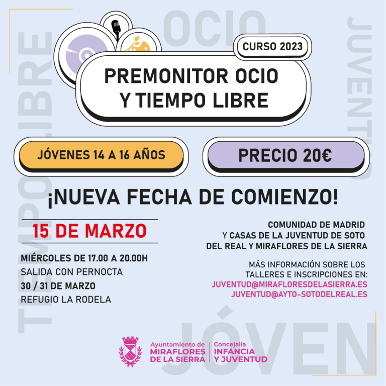 Es un curso diseñado para jóvenes de 14 a 16 años, que se impartirá entre Miraflores y Soto, y que tiene como objetivo que los jóvenes que tengan interés en el mundo del ocio y el tiempo libre, puedan hacer una toma de contacto de un modo pre-profesional.