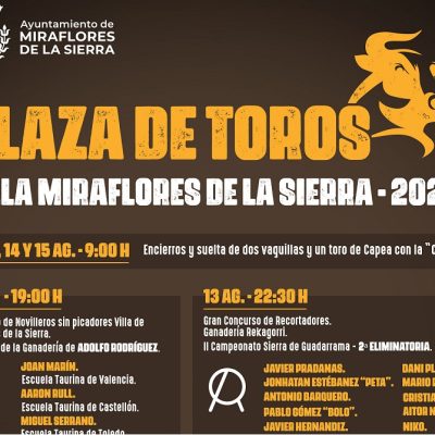Ya están aquí nuestras queridas fiestas de la Asunción de Nuestra Señora. Por fin volvemos a celebrar los festejos que tanto hemos echado en falta, todos esos eventos que dan un carácter tan nuestro a las fiestas de la Villa de Miraflores de la Sierra. Vuelve a salir a la calle la procesión de nuestra patrona, vuelven las orquestas que amenizan las noches en la Plaza de España, las charangas, la alegría de las peñas, vuelven los encierros y las novilladas en la Plaza de Toros -este año con importantes novedades- y, cómo no, vuelve la tan añorada Banda Pamplonica. Conciertos, actividades para los más pequeños, bueyadas infantiles, sesiones nocturnas de DJ… De todo para que nadie se quede sin disfrutar de unas merecidísimas fiestas.