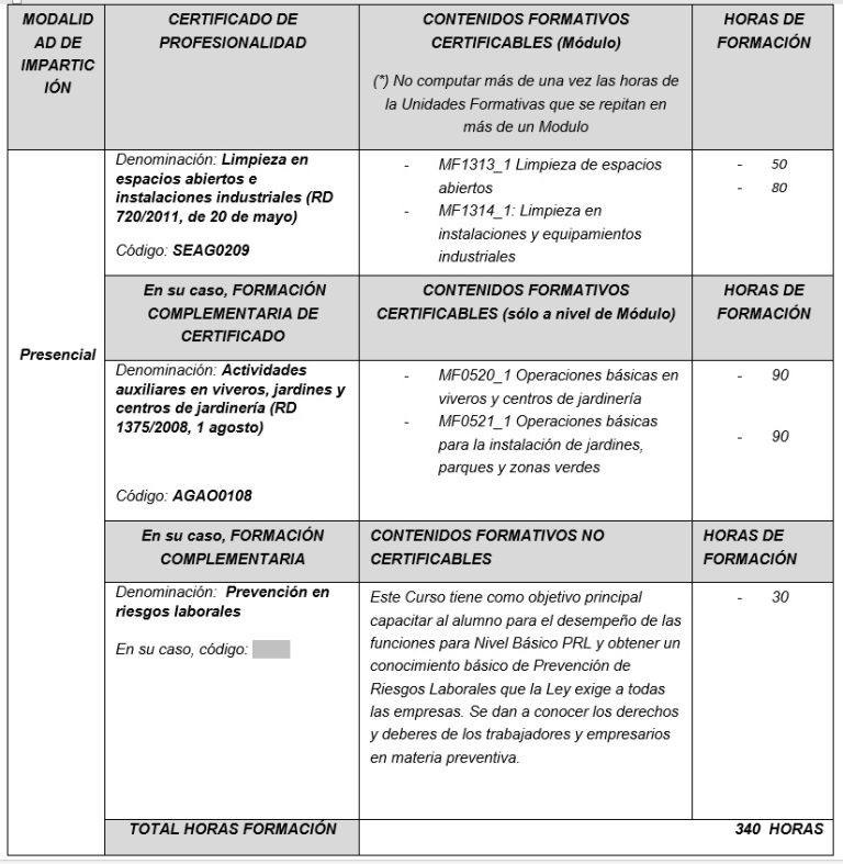 2. Programa de Cualificación Profesional: Dirigido al colectivo de desempleados mayores de 30 años inscritos en el INEM con 12 meses de antigüedad en los 18 últimos meses y que no tengan cualificación en el puesto a ocupar. Este programa tiene asociada la siguiente formación de certificado de profesionalidad y formación complementaria.