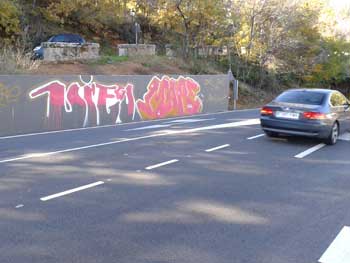 Otras de las actuaciones pendientes en la M-611 es la adecuación del muro de hormigón situado en el acceso al cerro. Trasladadas las quejas de los vecinos a la Dirección General de Carreteras, este Ayuntamiento ha recibido respuesta del Área de Conservación en la que se nos indica que ”se van a cubrir las pintadas y grafitis existentes en el muro aplicando una pintura sobre los mismos y se va a estudiar la solución más idónea para evitar que se vuelva a producir esta circunstancia”.