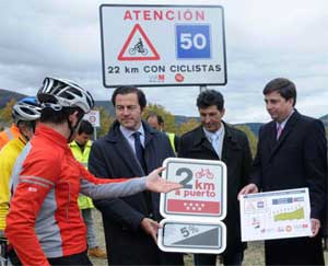 Durante el acto de presentación de la campaña “Juntos en la carretera” que consiste en la señalización de algunos tramos ciclistas, entre ellos la M-629 entre Miraflores de la Sierra y Canencia, el Alcalde, Juan Manuel Frutos, pudo preguntar al responsable regional de carreteras sobre la previsión de la Comunidad de Madrid acerca de la mejora de la carretera M-611 en su tramo entre Soto del Real y Miraflores de la Sierra.