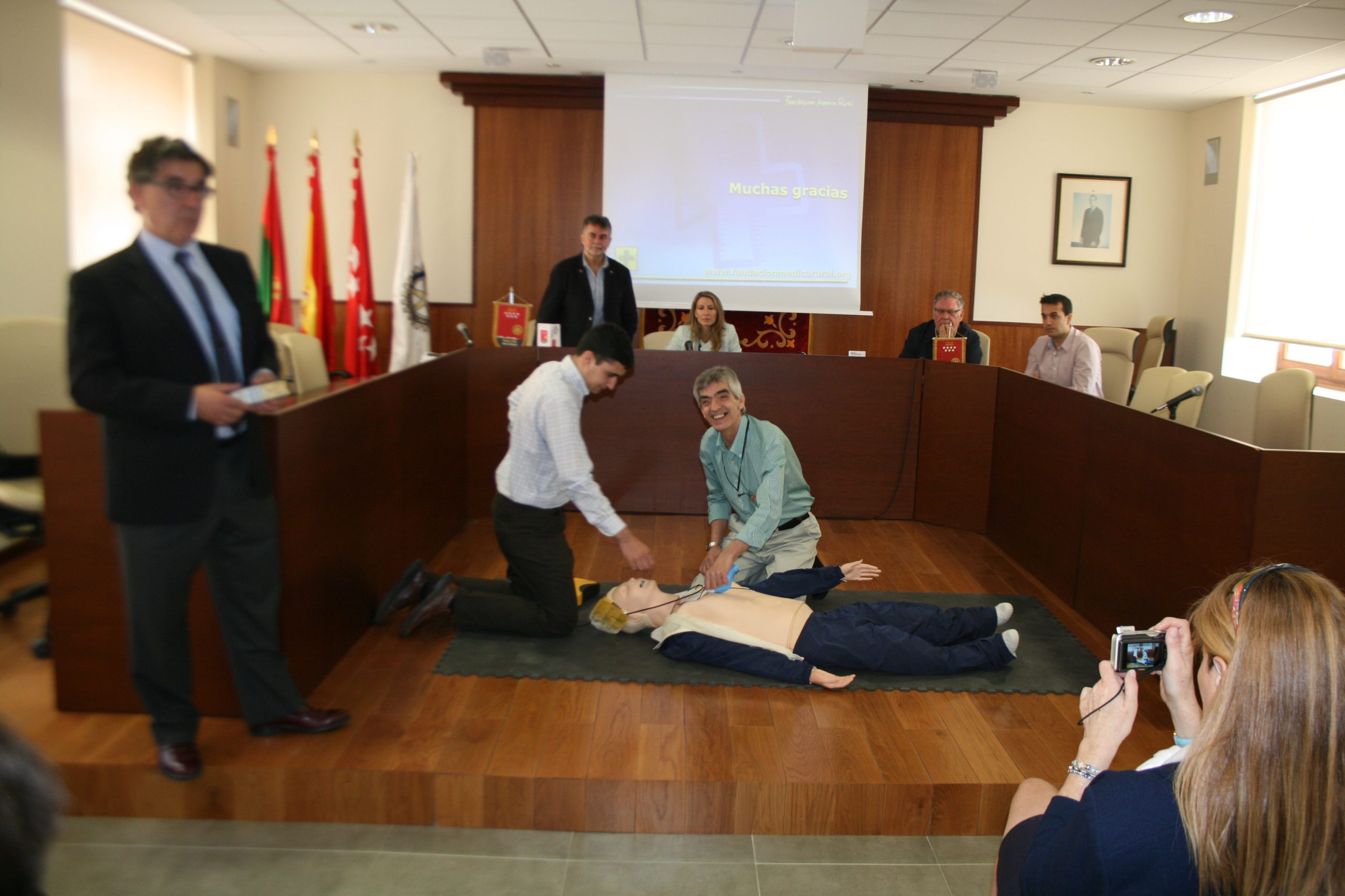 Durante el acto que tuvo lugar el pasado sábado 31 de mayo en el salón de plenos municipal pudimos ver por parte de los médicos de la Fundación Medico Rural un simulacro de actuación ante un posible infarto y la correcta utilización del desfibrilador.