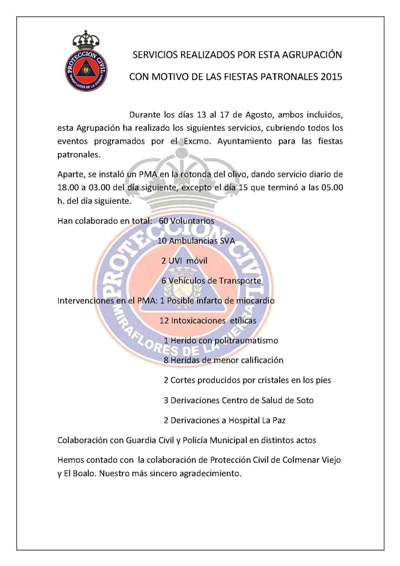 Servicios realizados por Protección Civil Miraflores de la Sierra con motivo de las fiestas patronales 2015