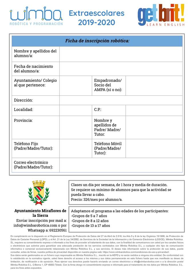 Más información e inscripciones en info@wimbarobotica.com . Tel.: 692230561