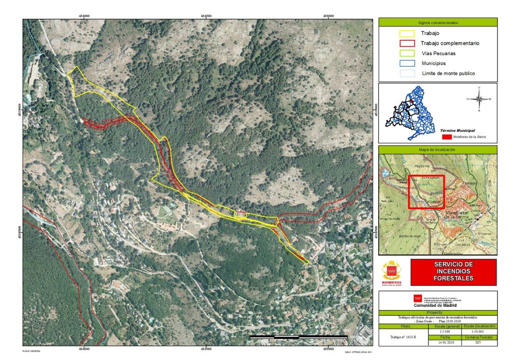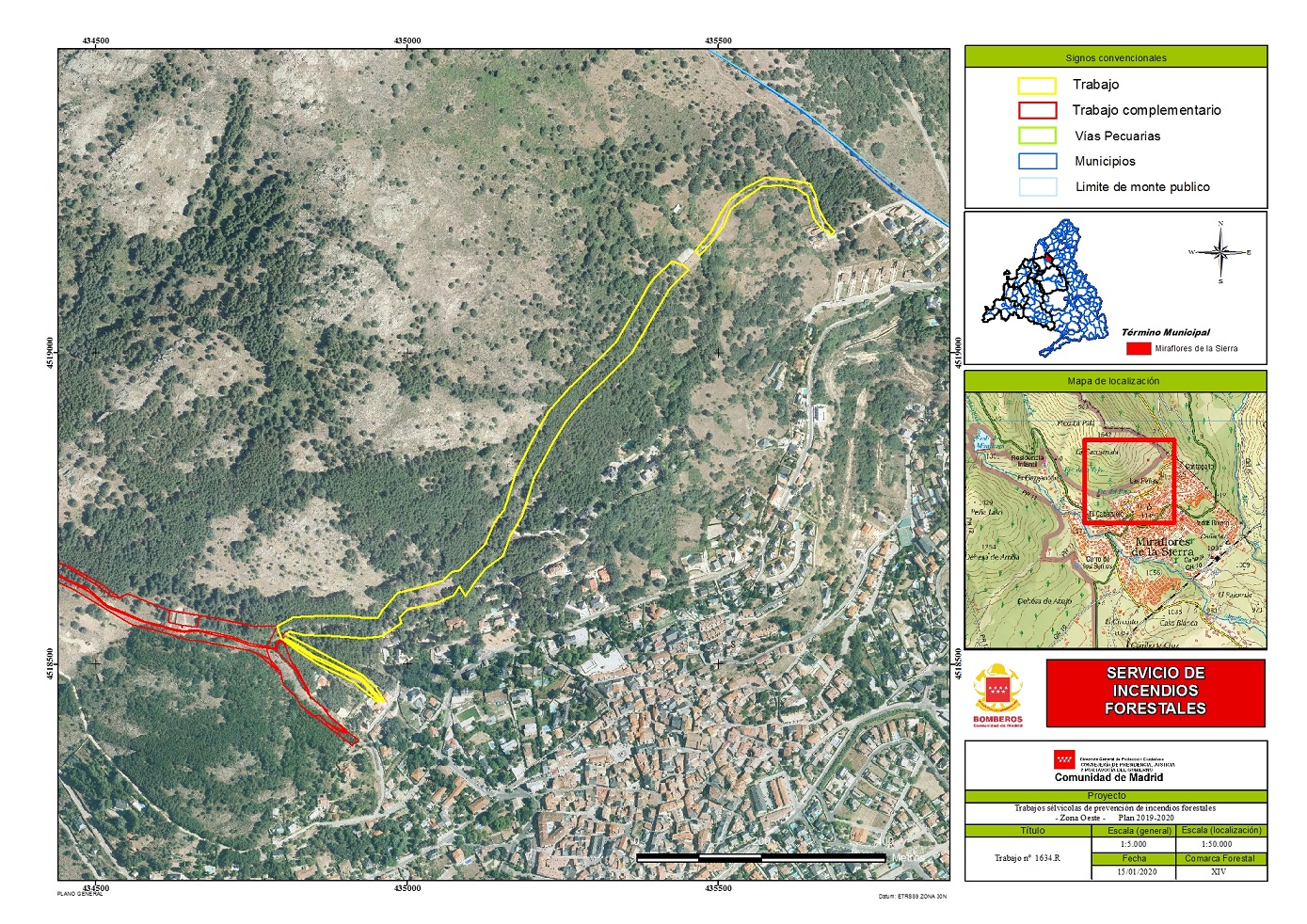El Servicio de Incendios Forestales de la Comunidad de Madrid, tiene la intención de llevar a cabo un trabajo de prevención de incendios forestales en el término municipal de Miraflores de la Sierra, conducente a la disminución del grado de combustibilidad de las masas forestales, dotándolas de mayor resistencia ante una posible propagación del fuego. Este trabajo, motivados por el riesgo de incendio forestal de la zona, es el 1633 R, localizado en la zona de El Cabezuelo. El trabajo se realizará preferentemente en la campaña de prevención 2019-2020, la cual comienza a partir del mes de octubre.
