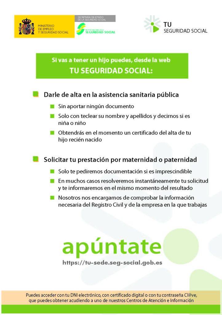 El INSS (Instituto Nacional de la Seguridad Social) ha puesto en marcha muy recientemente, a través del portal de internet TUSS (Tu Seguridad Social), dos servicios de gran importancia y trascendencia en relación con el nacimiento de hijos y las consecuencias inmediatas que el citado hecho tiene en el ámbito de la acción protectora de la seguridad social: