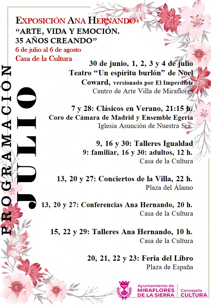 ¡En ella podréis encontrar todos los eventos, conciertos, talleres y mucho más que se van a producir en este mes de julio!