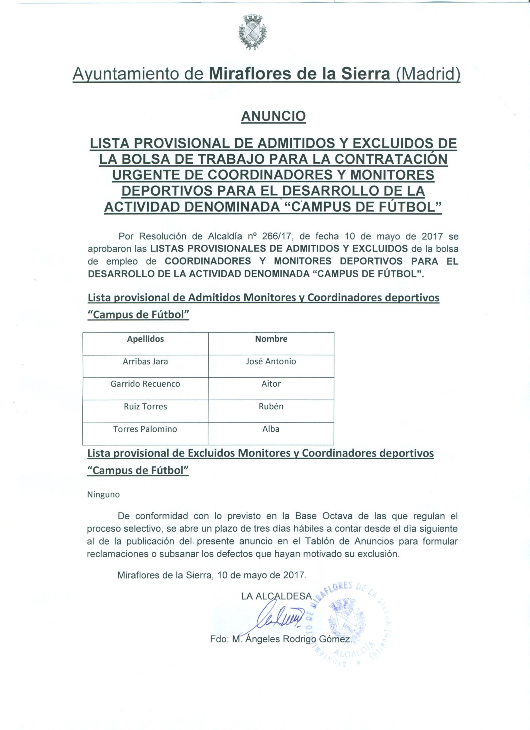 Bolsa De Trabajo Contratación Monitores Deportivos Invierno-Verano 2017-2018. 9 Agosto 2017. CERRADO.