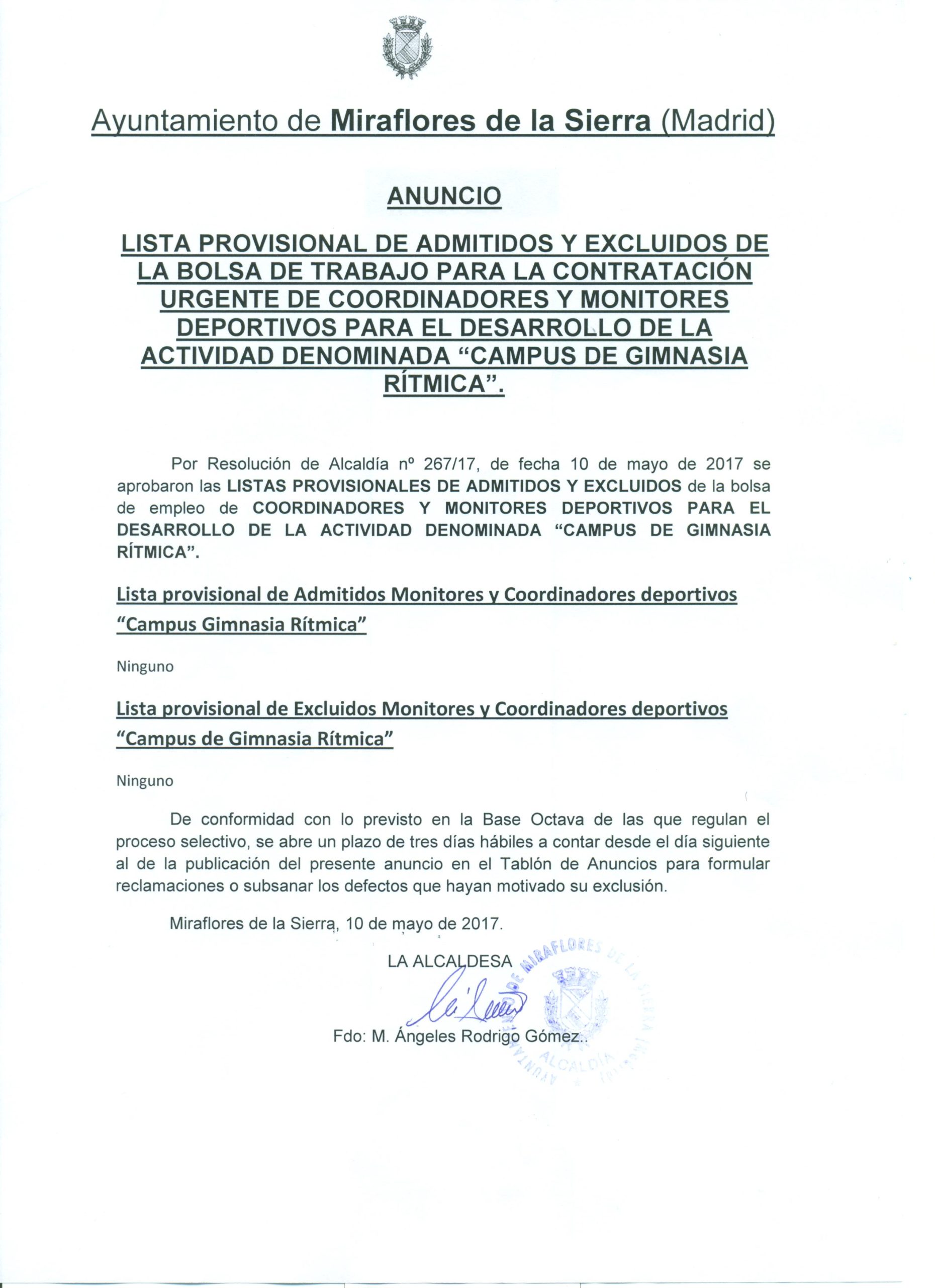 Bolsa de Trabajo contratación «Coordinadores y Monitores deportivos Campus de Gimnasia rítmica, Patinaje y Fútbol 2018”.