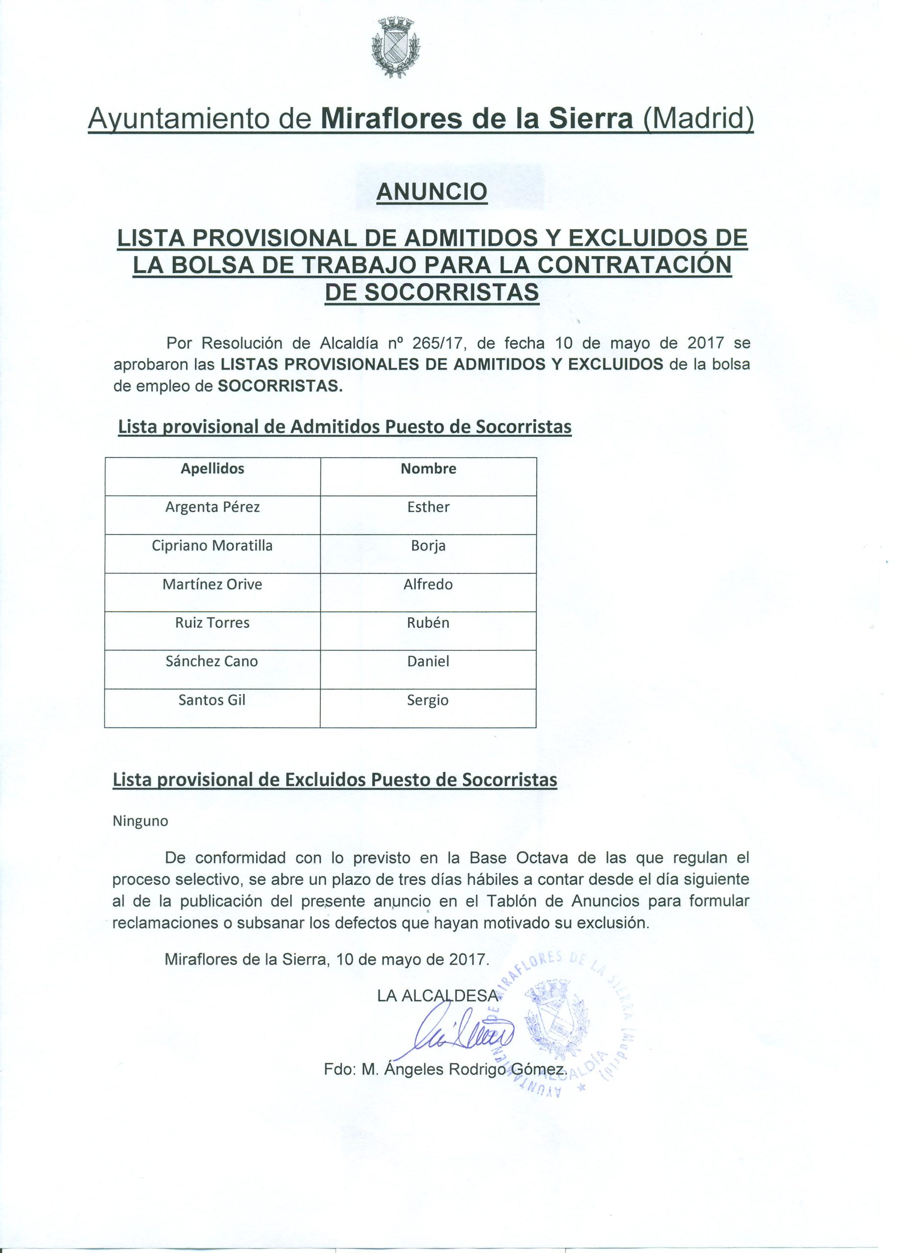 Bolsa de Trabajo para la Contratación de Auxiliar Administrativo para los servicios económicos del Ayuntamiento de Miraflores de la Sierra. Enero 2019