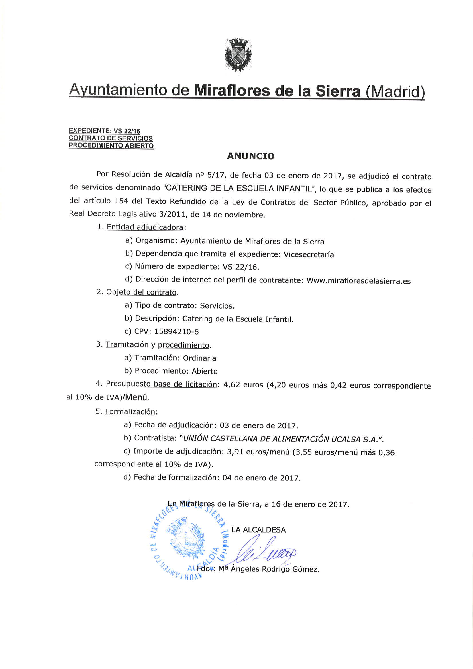 - Anuncio componentes mesa de contratación catering escuela infantil