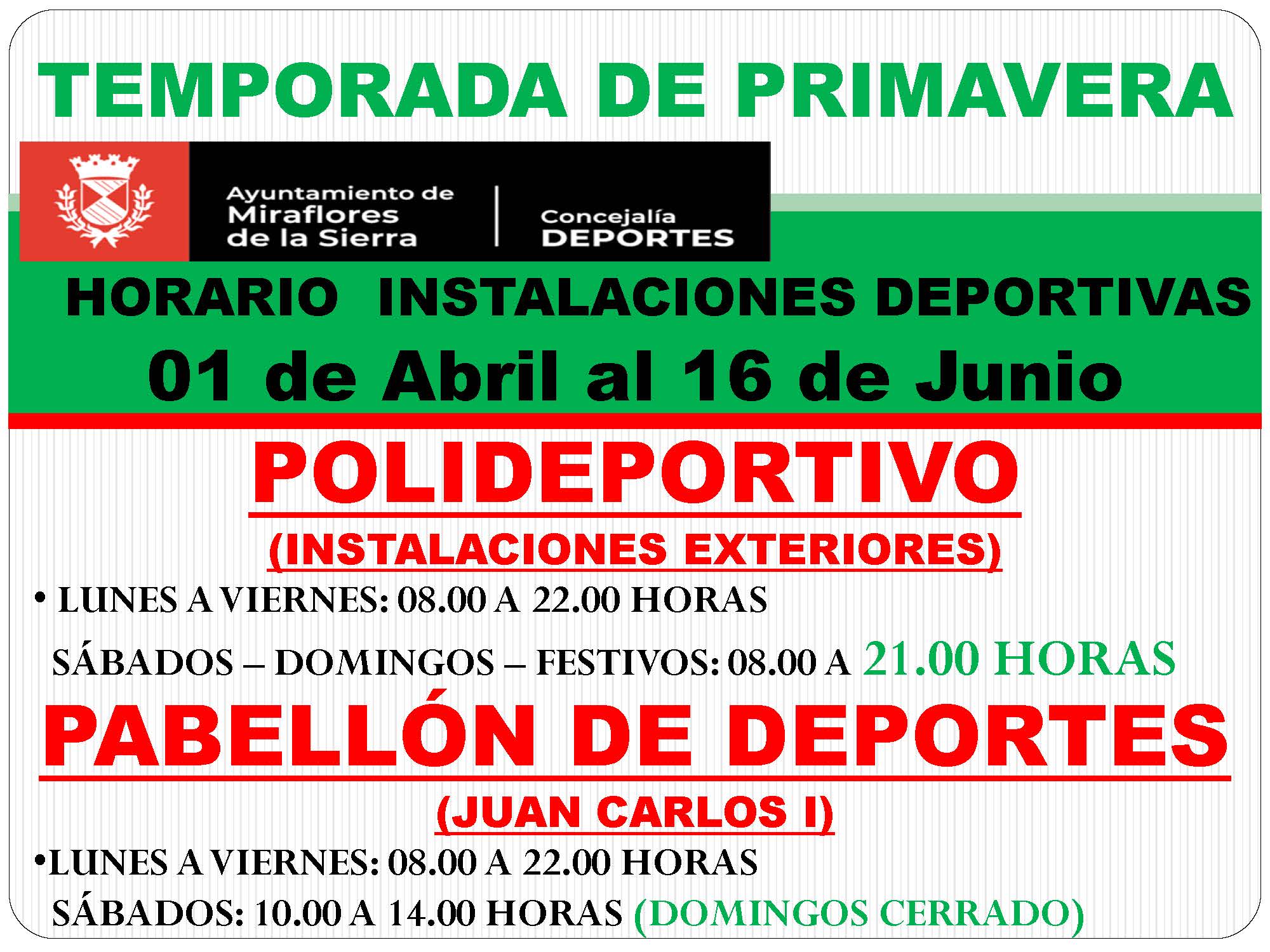 1- Horarios del Polideportivo Municipal