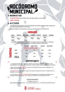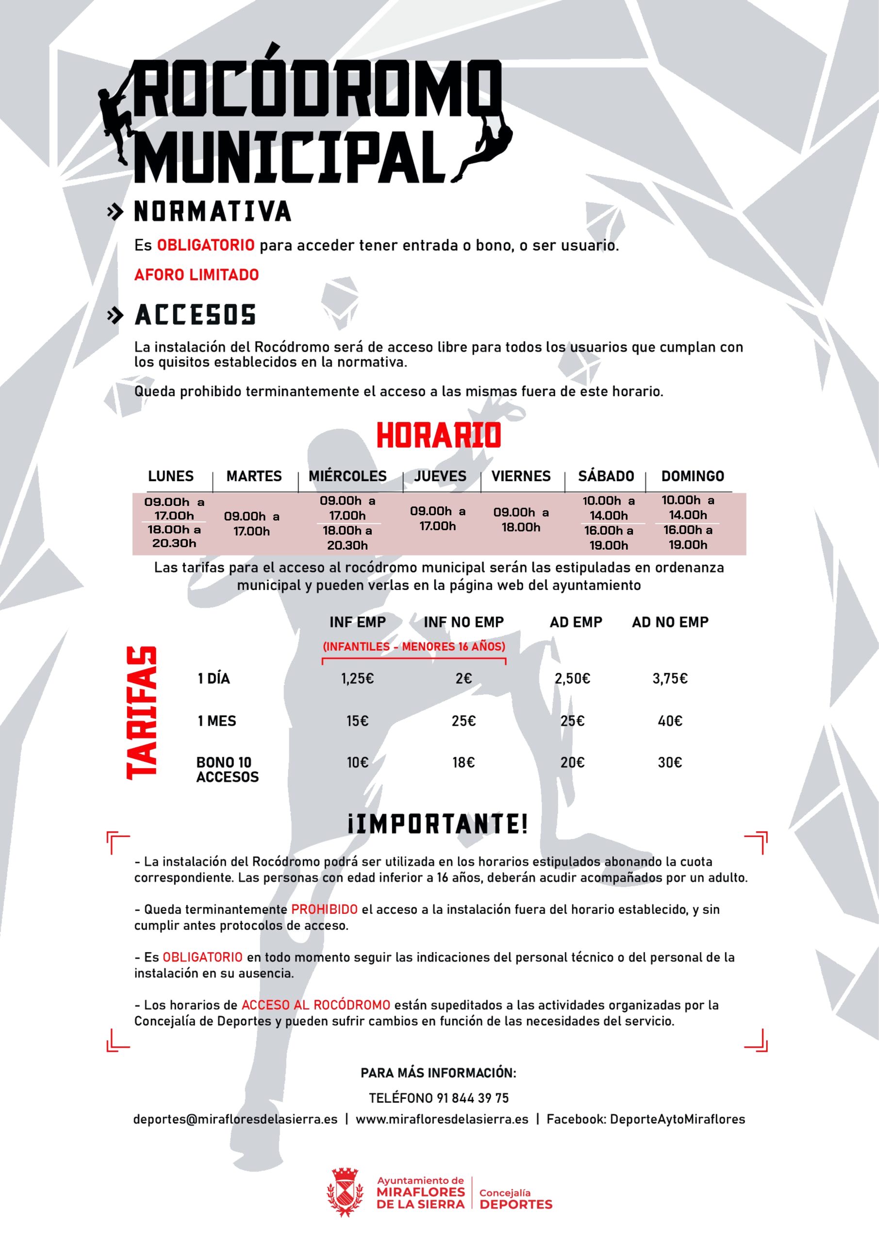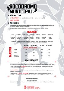 Los horarios de ACCESO AL ROCÓDROMO están supeditados a las actividades organizadas por la Concejalía de