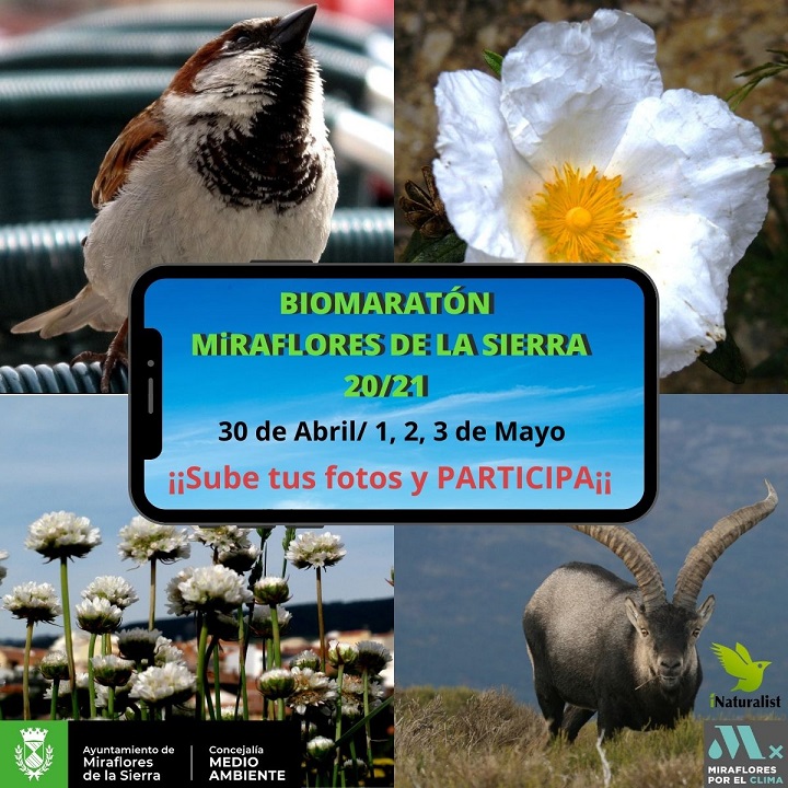 BIOMARATÓN CITY NATURE CHALLENGE Si de algo podemos presumir en Miraflores de la Sierra es de tener un entorno natural envidiable, rico en biodiversidad y en miles de rincones de innegable belleza. Poder compartirlo con el resto del mundo es el objetivo de la Biomaratón City Nature Challenge 2021, el mayor evento mundial de observación de biodiversidad en el que ciudadanos de todo el mundo muestran imágenes de naturaleza a través de una aplicación móvil. Gracias a las imágenes que se vayan recopilando se podrán hacer estudios de biodiversidad y su evolución en diferentes rincones del planeta, estudios puestos en marcha por instituciones que también participan en esta propuesta, como el Natural History Museum de Los Ángeles o la Academia de las Ciencias de California.