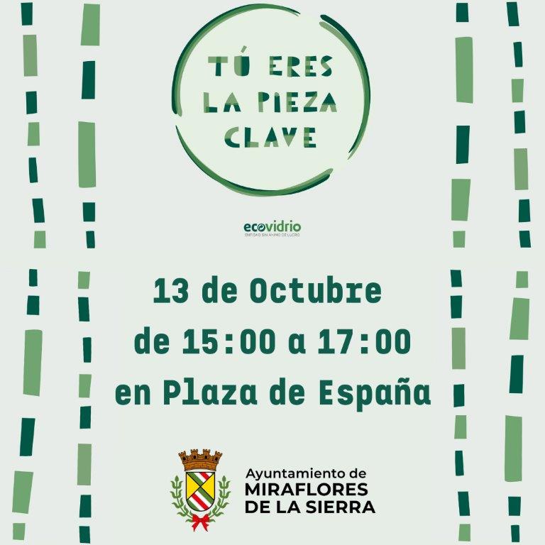TU ERES LA PIEZA CLAVE. OCTUBRE 2021 La iniciativa “Tú eres la pieza clave” de Ecovidrio llega a Miraflores de la Sierra para concienciar sobre la importancia del reciclaje de vidrio para cuidar el medioambiente Miraflores de la Sierra, 13 de octubre de 2021- Ecovidrio, la entidad sin ánimo de lucro encargada de la gestión de residuos de envases de vidrio en España, en colaboración con el Ayuntamiento de Miraflores de la Sierra, ha puesto en marcha la iniciativa “Tú eres la pieza clave” que tiene como objetivo concienciar sobre el proceso y los beneficios de reciclaje de vidrio para el cuidado del medioambiente. | ![]() |