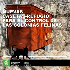 El Ayuntamiento de Miraflores de la Sierra trabaja en el control, protección, higiene y salubridad de las colonias felinas. Para ello ha instalado nueve casetas refugio y de alimentación con el sistema tolva.