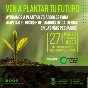 Con vuestra ayuda, plantaremos 75 encinas el domingo 27 de marzo. Contamos nuevamente con el respaldo y el permiso de Vías Pecuarias de la Comunidad de Madrid y la Asociación Cultural de Ecos de Miraflores.