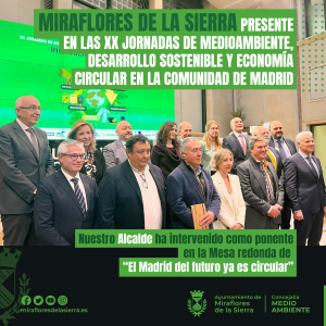 Organizadas por Madridiario, en estas jornadas se ha debatido sobre las claves y retos medioambientales a los que se enfrentan diferentes municipios de toda la comunidad madrileña. En la mesa ‘El Madrid del futuro ya es circular’, nuestro alcalde, Luis Guadalix, ha intervenido como ponente dando cuenta de las actividades que se realizan en el municipio en materia de reciclado, recuperación y reducción de residuos, colocando así a Miraflores a la cabeza en políticas municipales encaminadas a poner en valor la importancia de la reducción y correcta gestión de los residuos y el buen uso que podemos hacer de las materias primas.