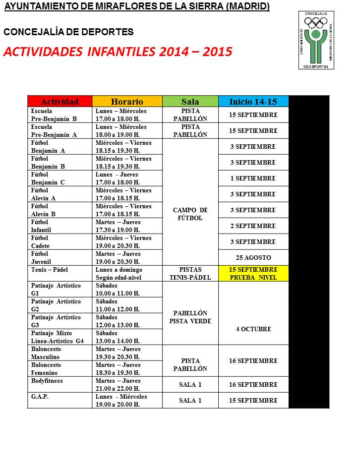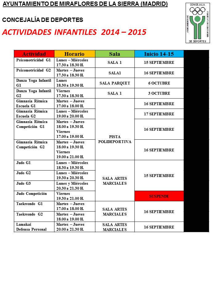 Actividades Deportivas Infantiles:Temporada 2014-2015