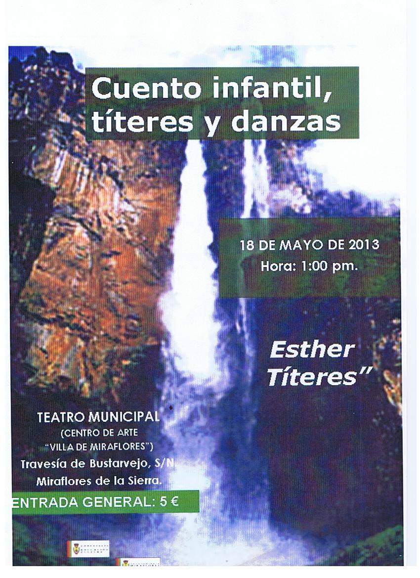 La Concejalía de Educación y Cultura presenta a «Esther Títeres» con «Cuento infantil, títeres y danza», un espectáculo para toda la familia, el sábado 18 de mayo a las 13 h. en el Centro de Arte Villa de Miraflores.
