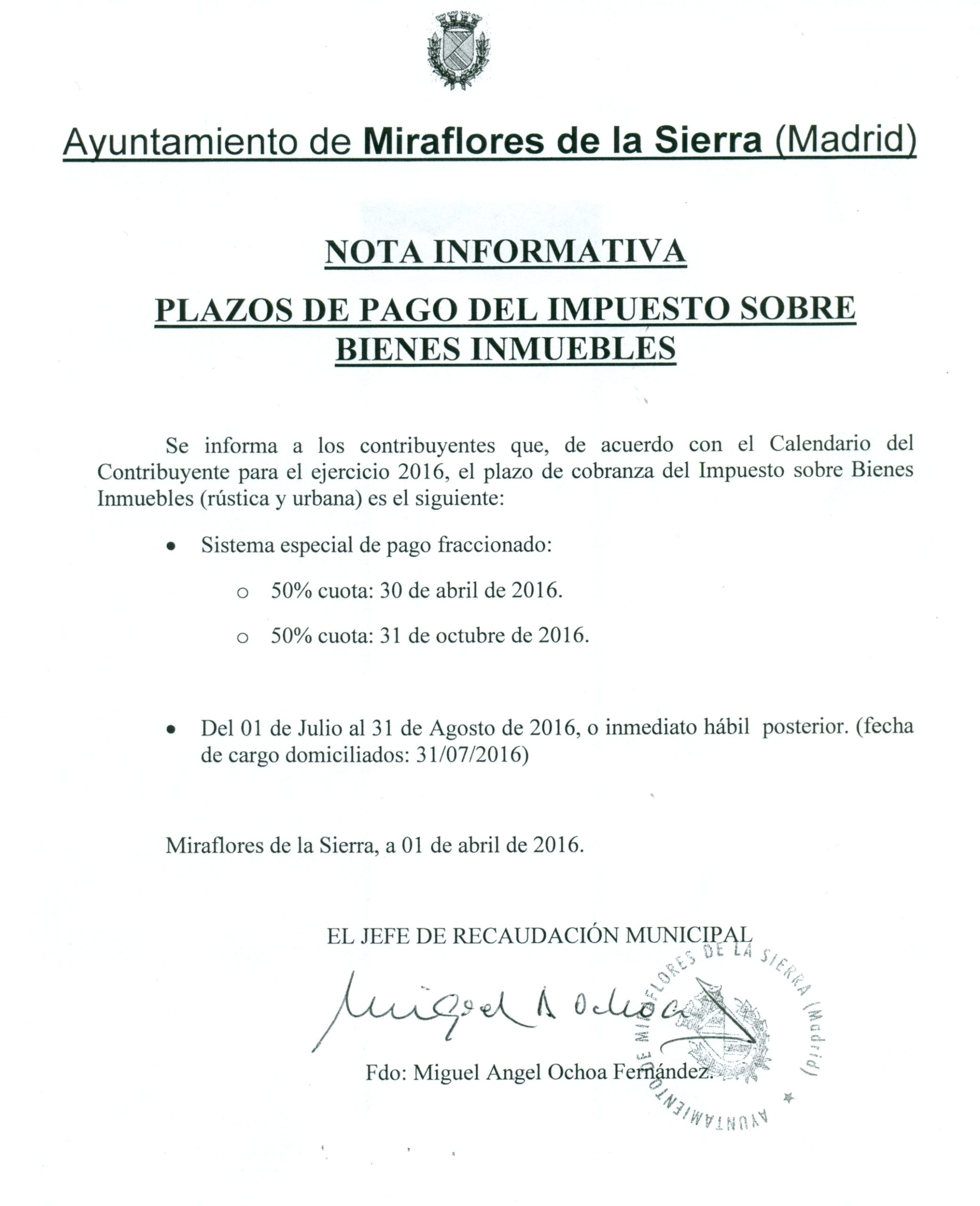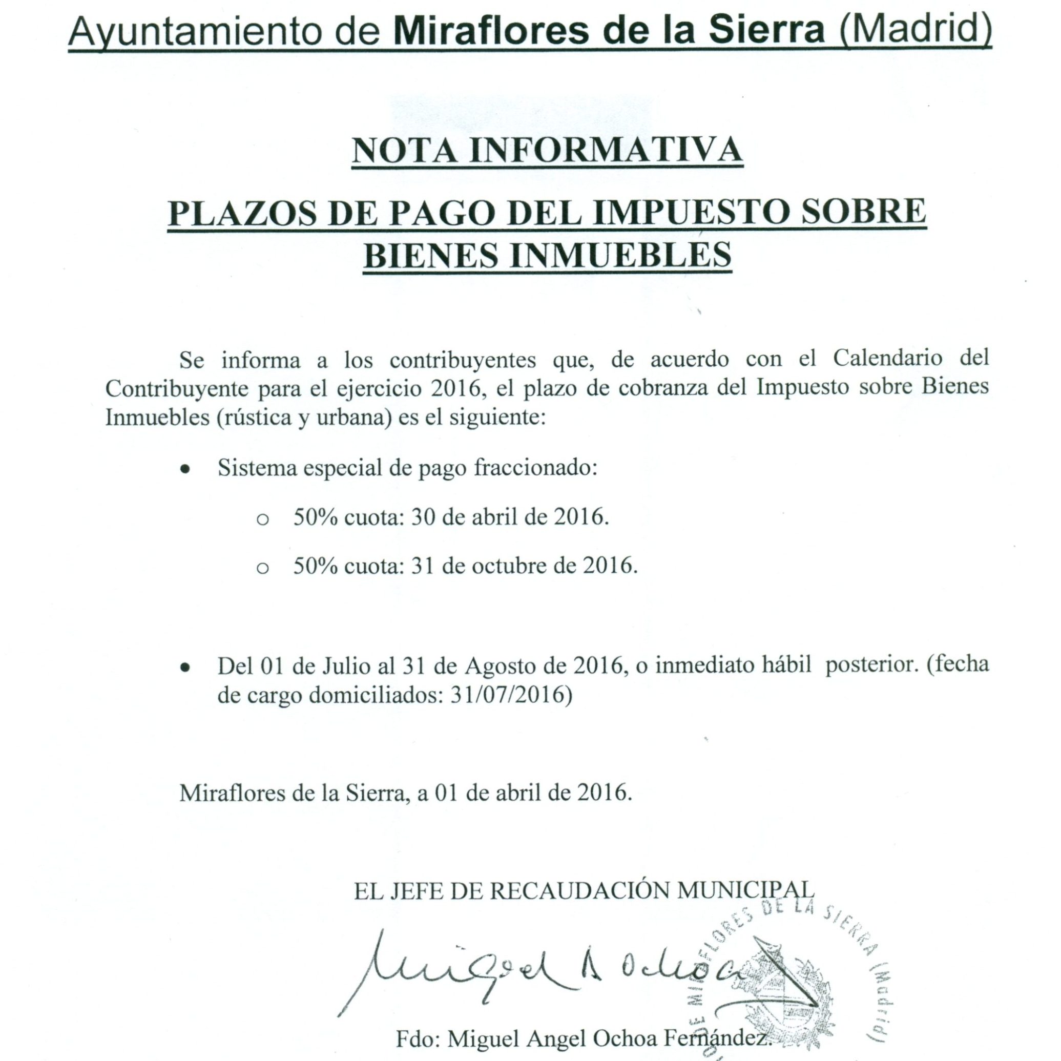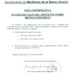 Nota informativa: Plazos de Pago del Impuesto sobre Bienes Inmuebles